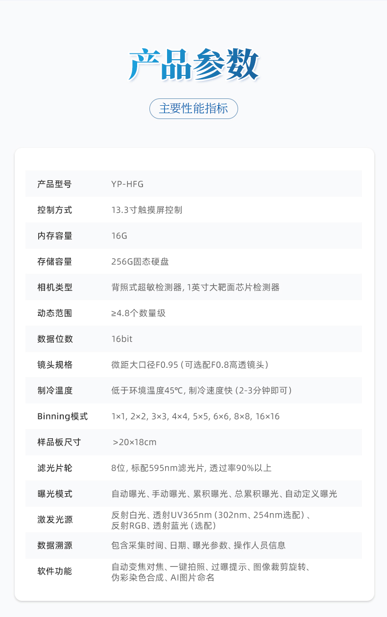 采用 13.3 寸觸摸屏控制,內(nèi)存 16G,256G 固態(tài)硬盤,使儀器具有更強(qiáng)大圖像計算及 處理能力,配合圖像采集軟件操作簡捷直觀,軟件具有自動采集信號及彩色 marker,并進(jìn) 行自己處理合成功能;曝光模式分為自動曝光、手動曝光、累積曝光、總累積曝光以及自 動定義曝光功能。配合圖像分析軟件可對圖像信號進(jìn)行定性定量分析。