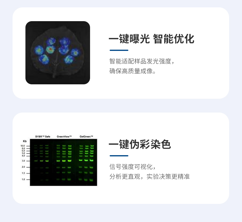 一鍵自動曝光功能,智能適配樣品發(fā)光強(qiáng)度,確保高質(zhì)量成像。
