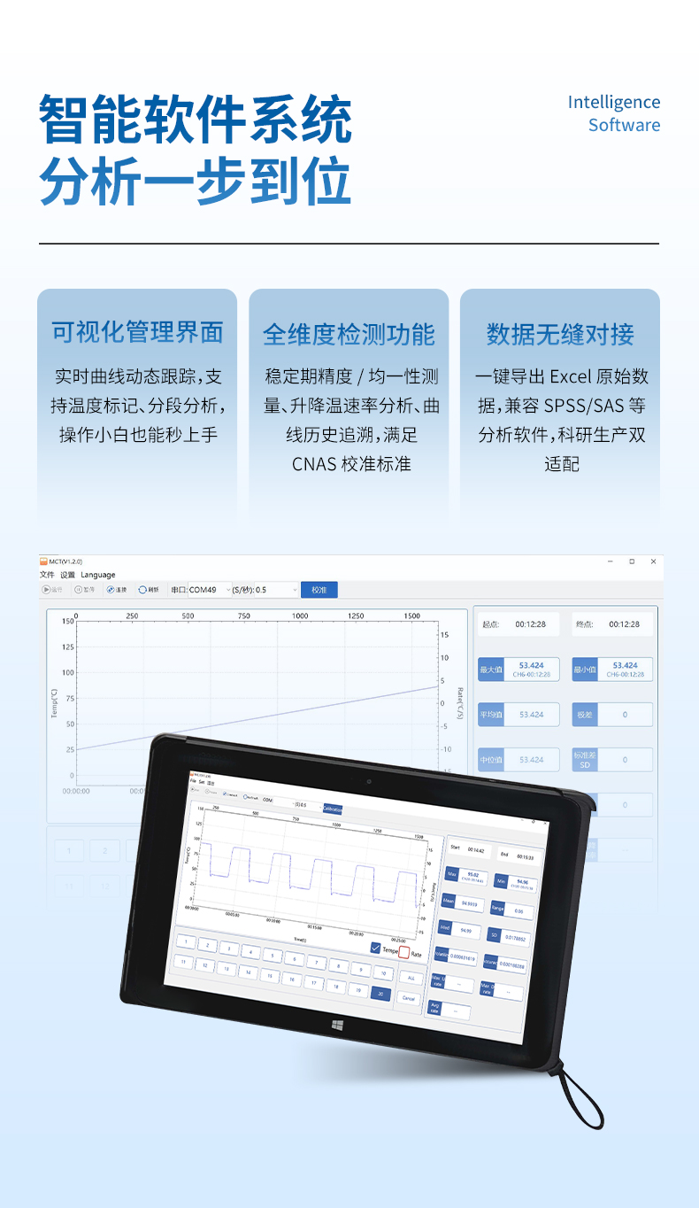 3.20通道/0.5S的高速溫度采集速度,適應(yīng)大部分10℃/S以下的管內(nèi)升降溫實(shí)時數(shù)據(jù)采集,不損失有效溫度數(shù)據(jù)