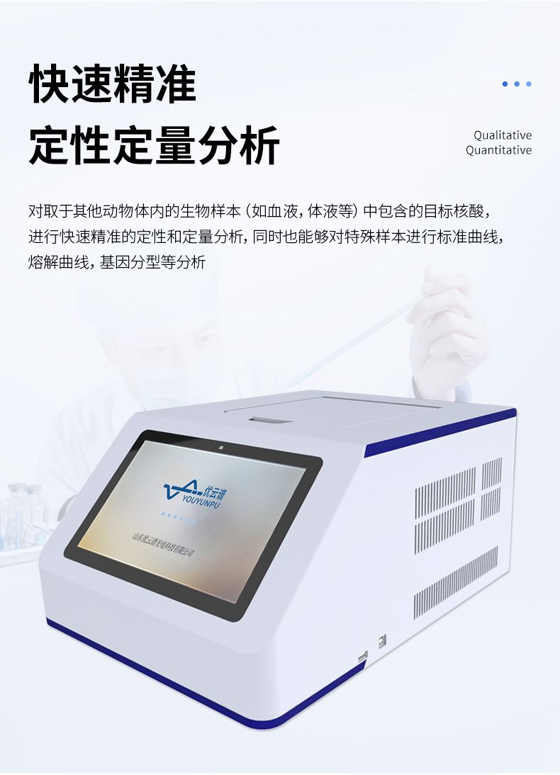 對取于其他動(dòng)物體內(nèi)的生物樣本(如血液,體液等)中包含的目標(biāo)核酸,進(jìn)行快速精準(zhǔn)的定性和定量分析,同時(shí)也能夠?qū)μ厥鈽颖具M(jìn)行標(biāo)準(zhǔn)曲線,熔解曲線,基因分型等分析。